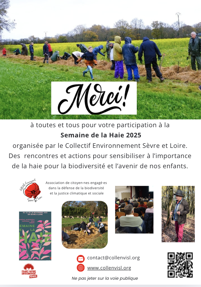 Après une 1ere édition enthousiasmante, voici la seconde édition de la semaine de la haie en Sèvre et Loire.